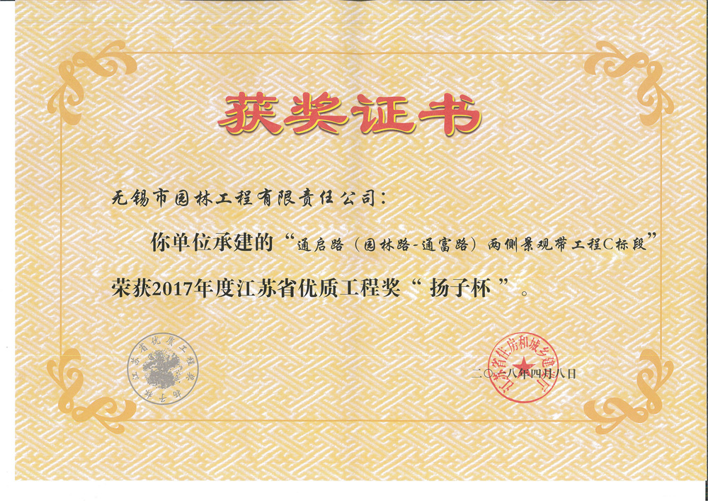 2016揚子杯——無錫地鐵1號線沿線景觀綠化工程三標